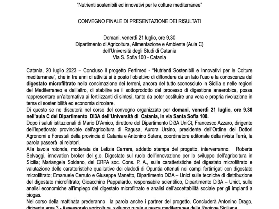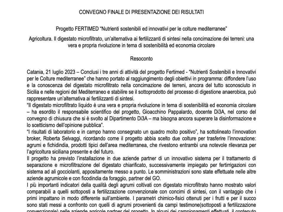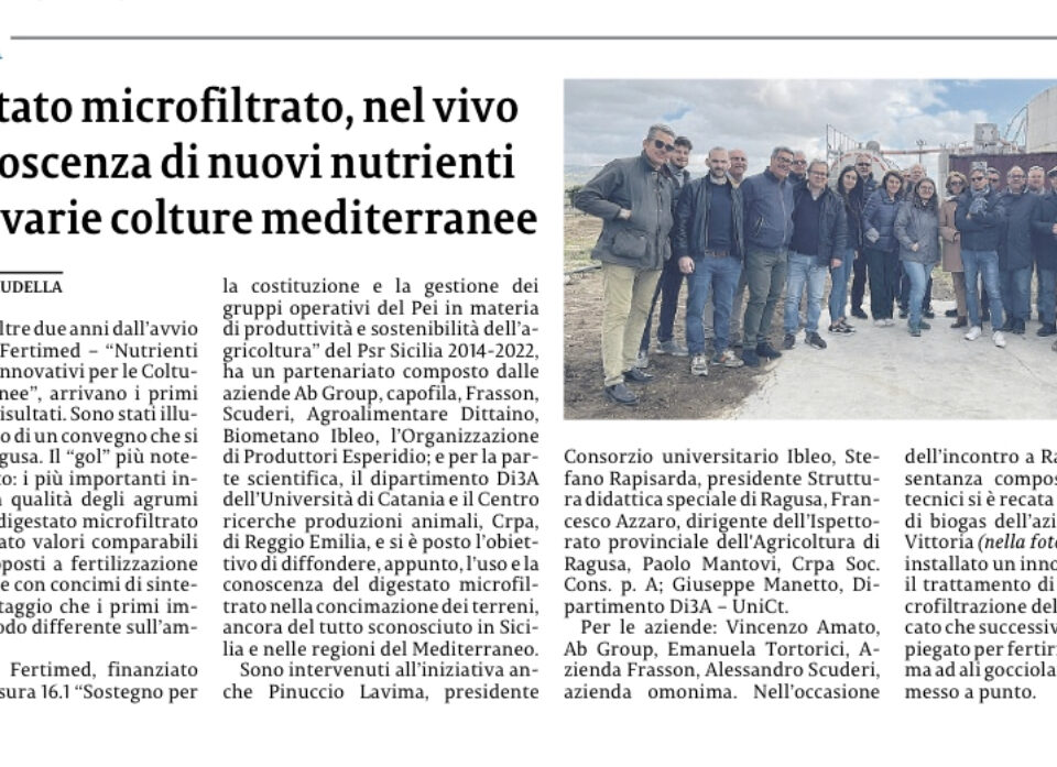 Fertimed, progetto pilota per l’uso del digestato nella concimazione